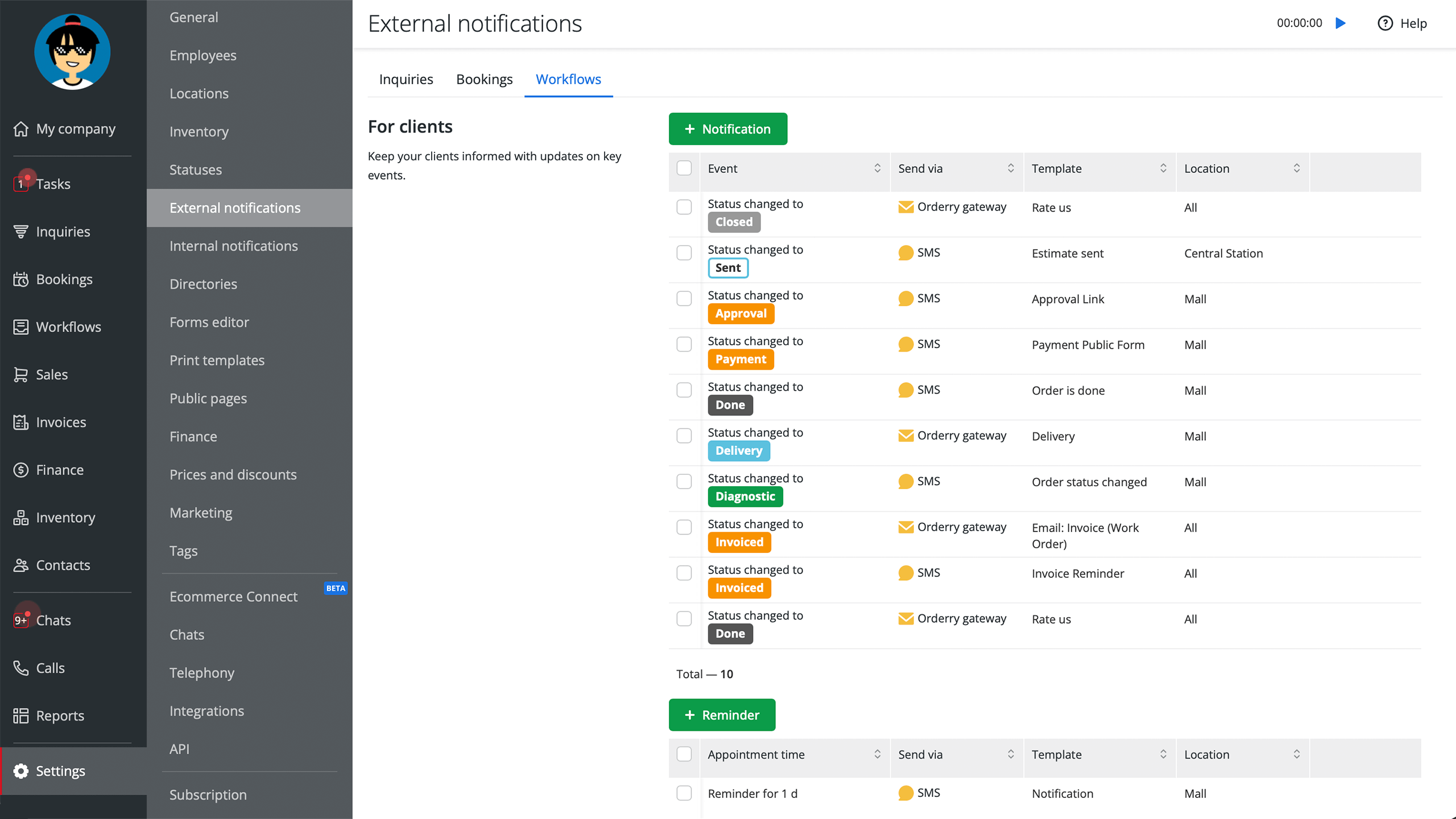 Keep them updated on work progress, send ready-to-pickup alerts and appointment reminders, or request to leave feedback on the services received. You can set up your messages to be sent automatically triggered by specific events (status changes, time scheduled) or manually.