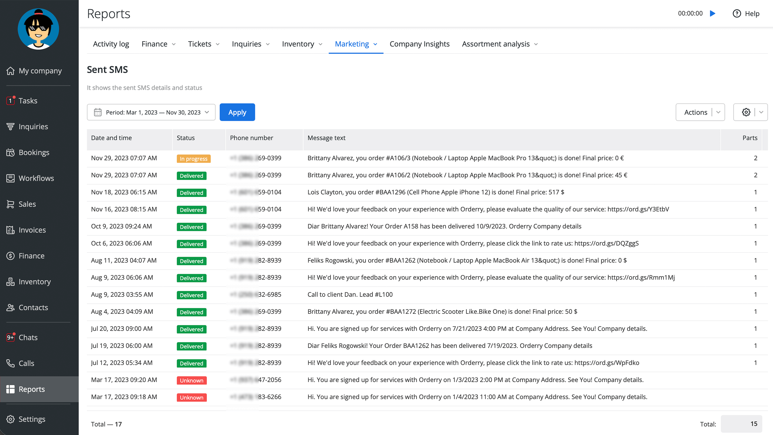 Atualize, Alerte e Informe os Clientes via SMS Diretamente da Sua Conta do Orderry