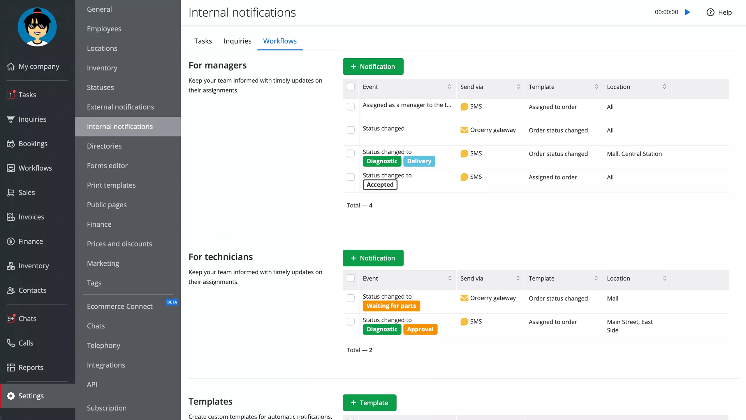 Se você usar o Orderry, o gerenciamento de tarefas se tornará um processo tranquilo. Este conjunto de ferramentas está integrado com outros objetos do programa, permitindo que você acesse todas as informações necessárias rapidamente. Você pode ver o histórico de tarefas, monitorar a atividade dos funcionários, configurar cálculos automáticos da folha de pagamento para tarefas concluídas em tempo hábil, e colaborar com sua equipe sem sair do Orderry.